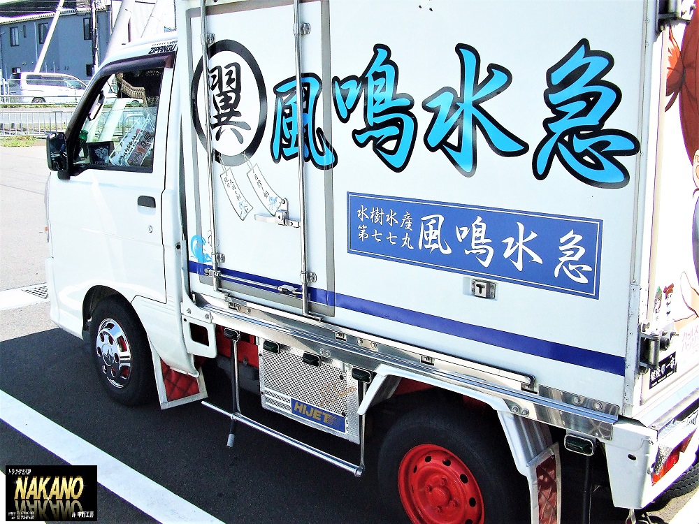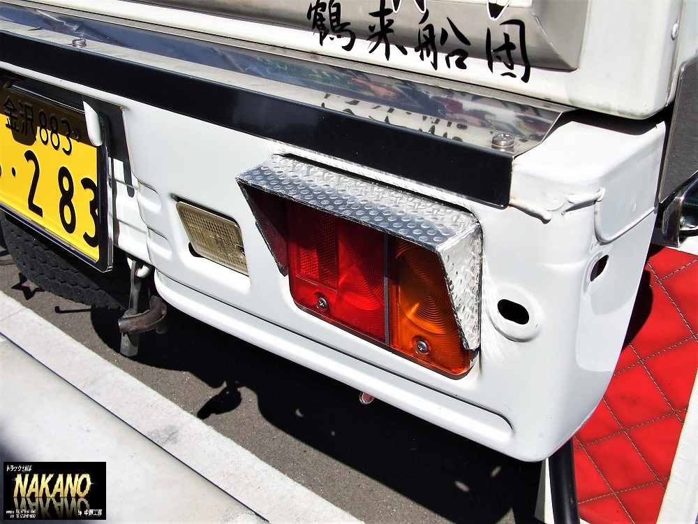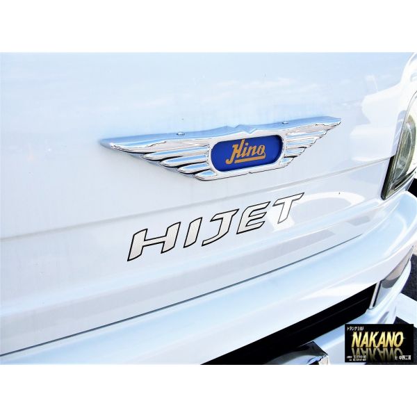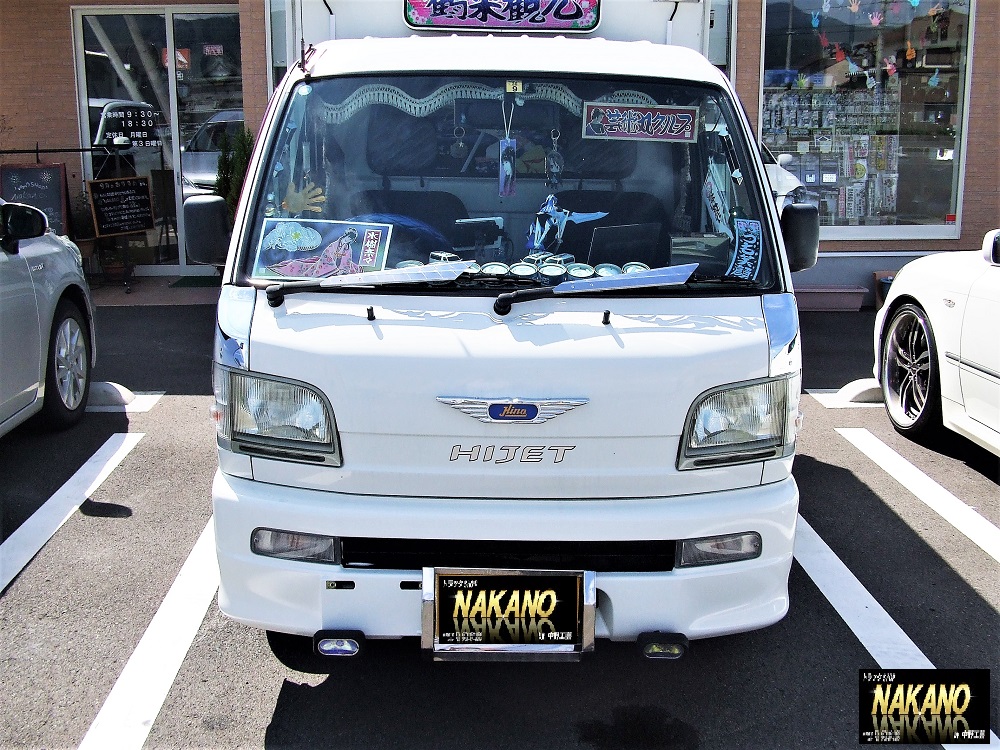 軽トラックのボディサイズにピッタリ!白いボディにメッキが輝いていますね!