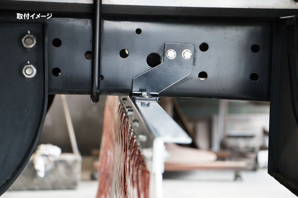 泥除けブラケット位置を移動して取付を容易にする移動ブラケット。