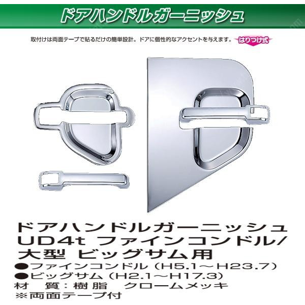 ●商品名:ドアハンドルガーニッシュファインコンドル/ビックサム用●品番:572218●材質:樹脂製クロームメッキ仕上げ●規格:ファインコンドルH5.1~H23.7ビックサムH2.1~H17.3●入数:1セット●画像のため実際の商品とは多少色が違って見える場合があります