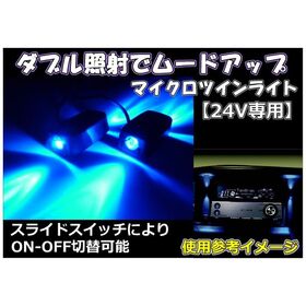●両側に光を照射。マイクロサイズのブルーLEDライト●左右のAピラー上部や、オーディオの両端等に設置することにより、両方向を照射●ON/OFFスイッチ付きカープラグ付きで取付簡単!●主材質:ABS /コード:約2m●定格電圧:DC24V●画像色は実際の色と多少違って見える場合があります