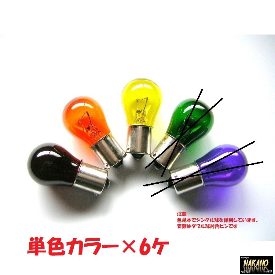 24V25/10W ダブル球 電球 生地着色 カラー球 6ケセット ブレーキ・コーナーバルブなど BAY15D S-25