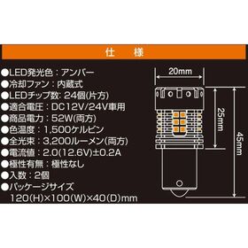 トラック用 LED ウインカーバルブ 2個入 アンバー S-25 ピン角度選択 12/24V共用 ハイフラ防止機能搭載