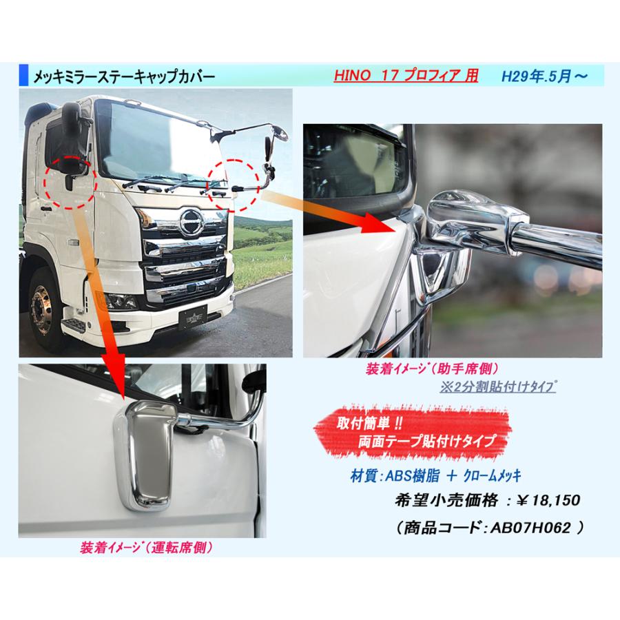 トラック用 メッキ ミラーステー根元キャップカバー 左右セット 17プロフィア H29.5~