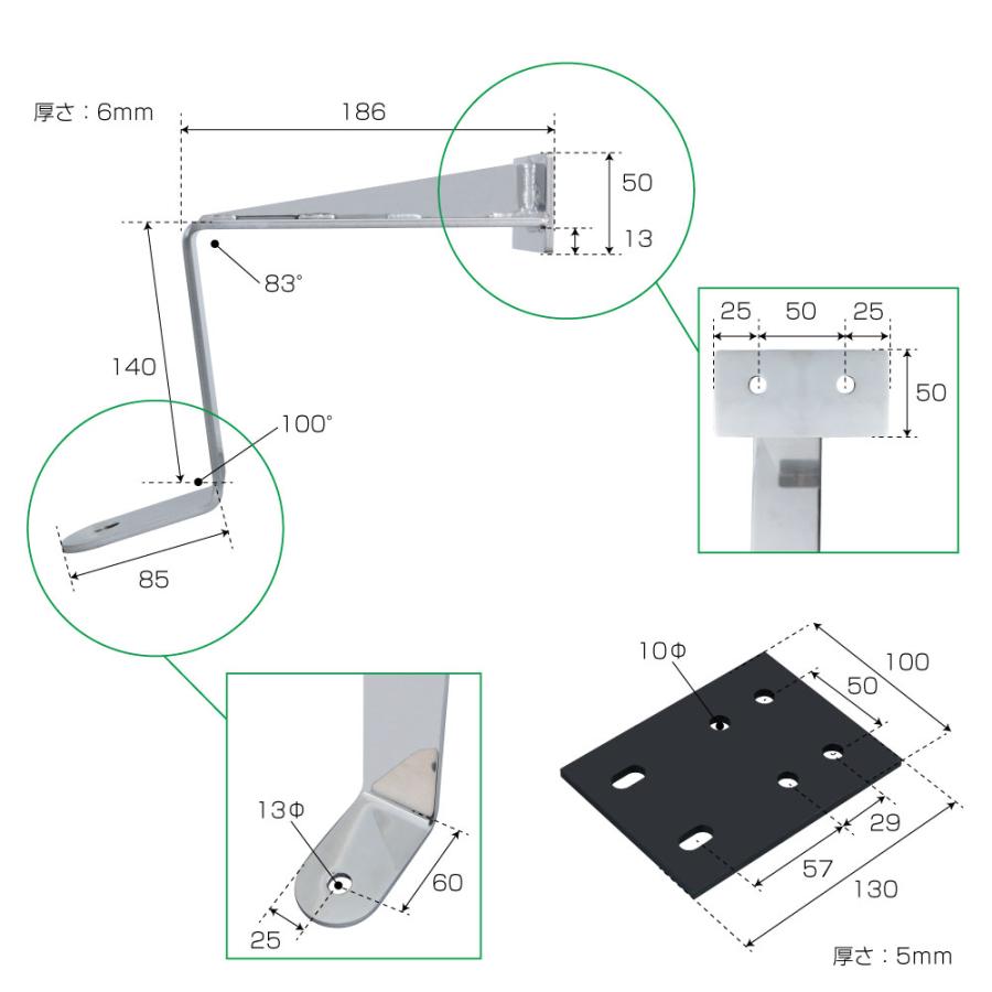 ●ブレ対策として補強と合わせ、ステンレス製ステーの厚さは6mm