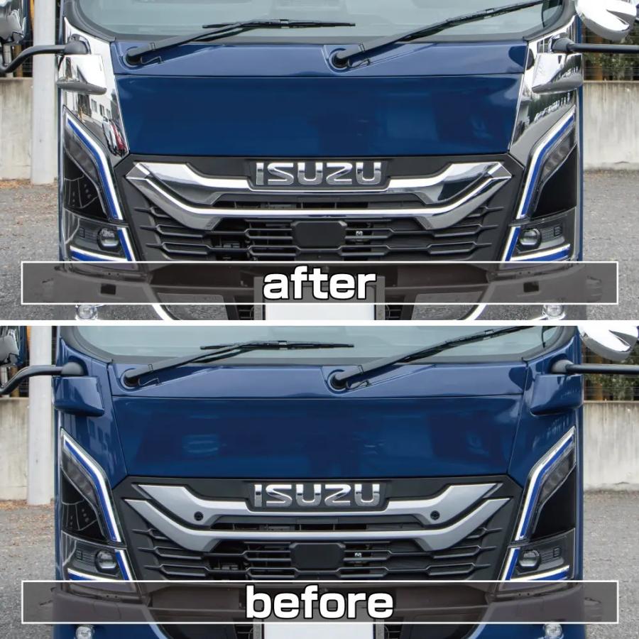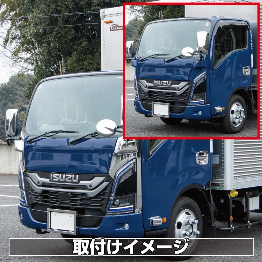 ●外装定番メッキパーツ「コーナーパネル」R/Lセット●適合車種:いすゞ2t23エルフ ローキャブ車(R5.3〜 )※エルフミオ(R6.7〜)適合●材質:樹脂/クロームメッキ●注意: 取付に必要な部品は純正品をご使用ください。ハイキャブ車は取付け不可。