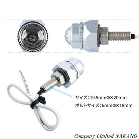 ●ワンポイント装飾に最適な定番アイテム。●またレンズは取り外しが可能なので別売りのクリアーレンズに交換することで個性は更に豊かに!●サイズ:19.5mmΦ×20mm●ボルトサイズ:6mmΦ×18mm●定格:DC24V 約20mA