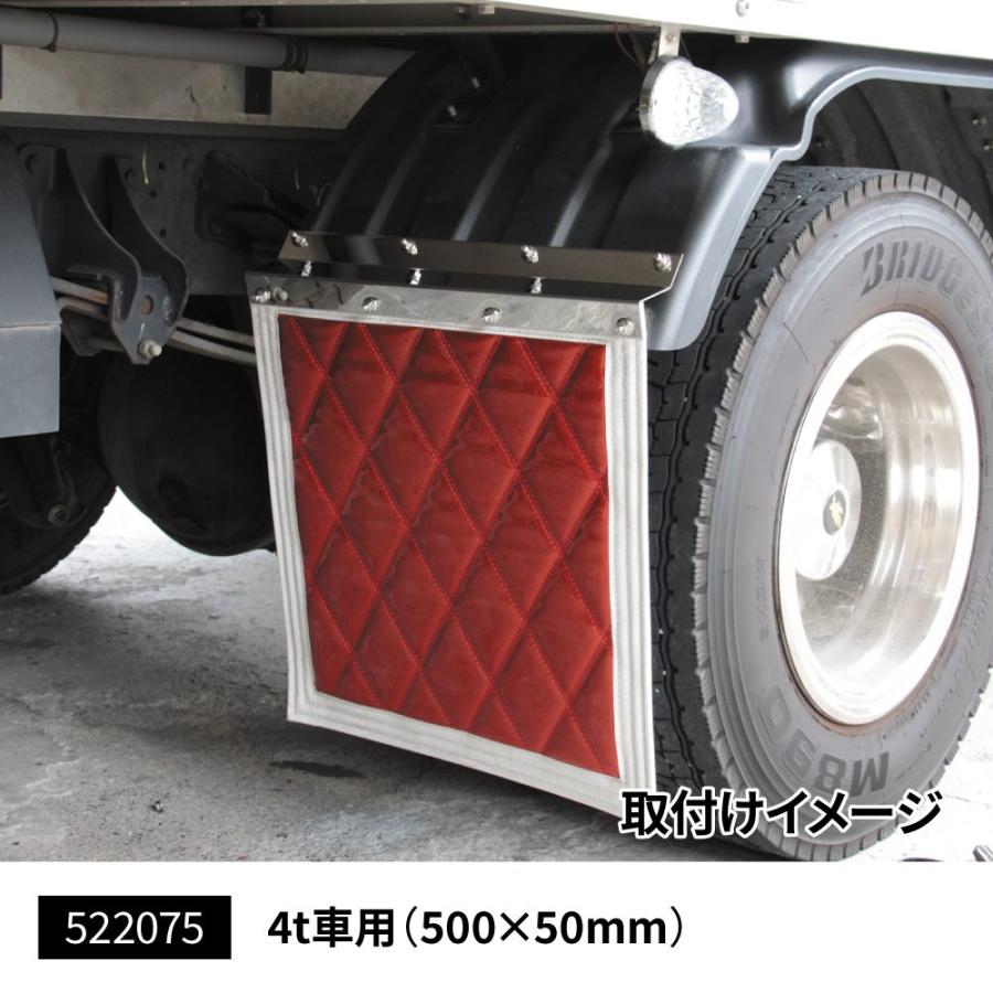 ●泥除け取付け位置を50mmオフセット!! ●泥除け巻き込み防止板に4t車用リリース!●泥除けがタイヤに巻き込まれてしまうことを防止する 装飾効果も高めるステンレス製の防止板です。●材質:ステンレス●本体サイズ:500×50(+35×35)mm 厚さ1.2mm●2枚入り(裏面あて板2枚付属)