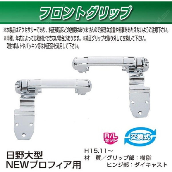●品番:572256●材質:グリップ樹脂製ヒンジ部ダイキャスト●NEWプロフィアH15.11~●入数:左右セット●画像のため実際の商品とは多少色が違って見える場合があります●この商品はメーカー取り寄せ商品の為、発送までに2日ほどお日にちを頂きます。ご了承下さい