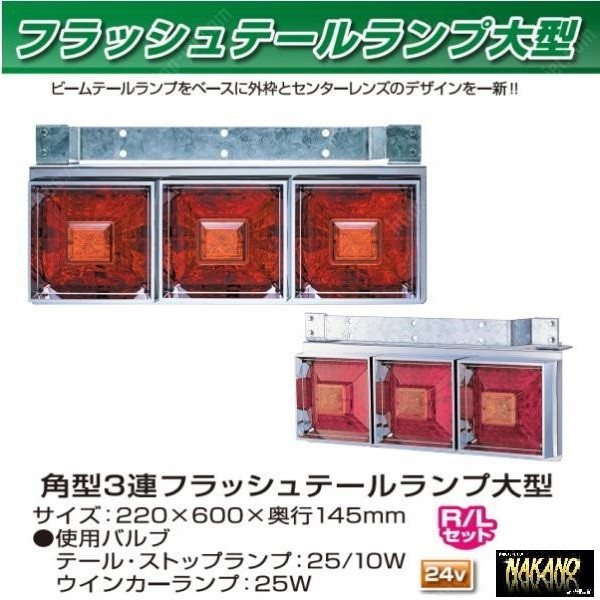 ★角型 フラッシュ 3連テールランプ 大型 24V リレー付き  R/Lセット JET製 (525701)